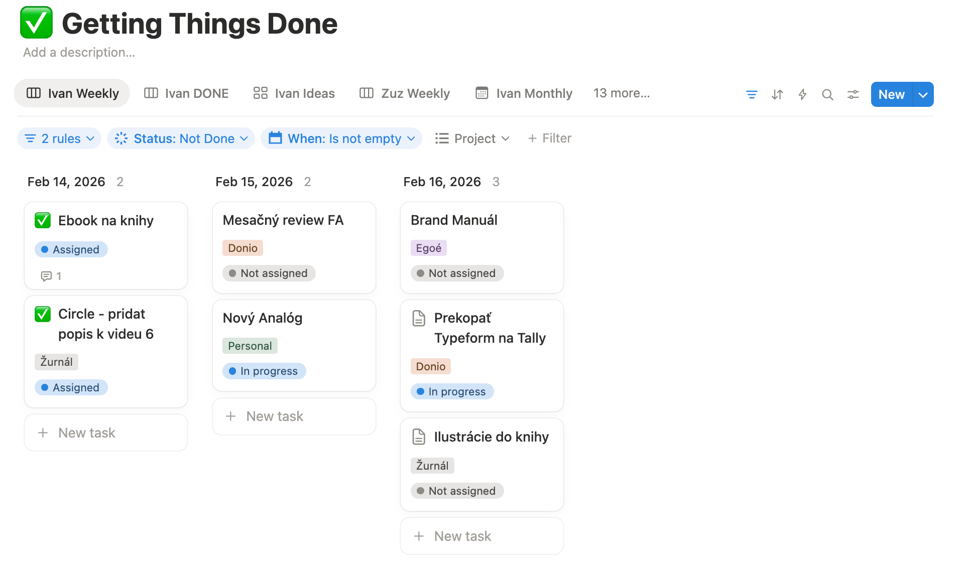 Dnes mám jednu databázu Getting Things Done. Vediem v nej kombinovane všetky osobné aj pracovné projekty. Pre mňa aj mojich kolegov.